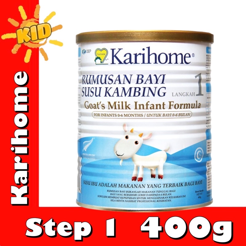 Karihome Goat Milk Infant Formula Step 1 400g quantity. Karihome Upgrade Formula. Karihome Goat Milk Infant Formula Step 1 400g is suitable for infant 0 6 months Breast milk is the best for babies Karihome Goat Milk Products are a fantastic quality approach to dairy for those allergic to or having troubles with cows milk.